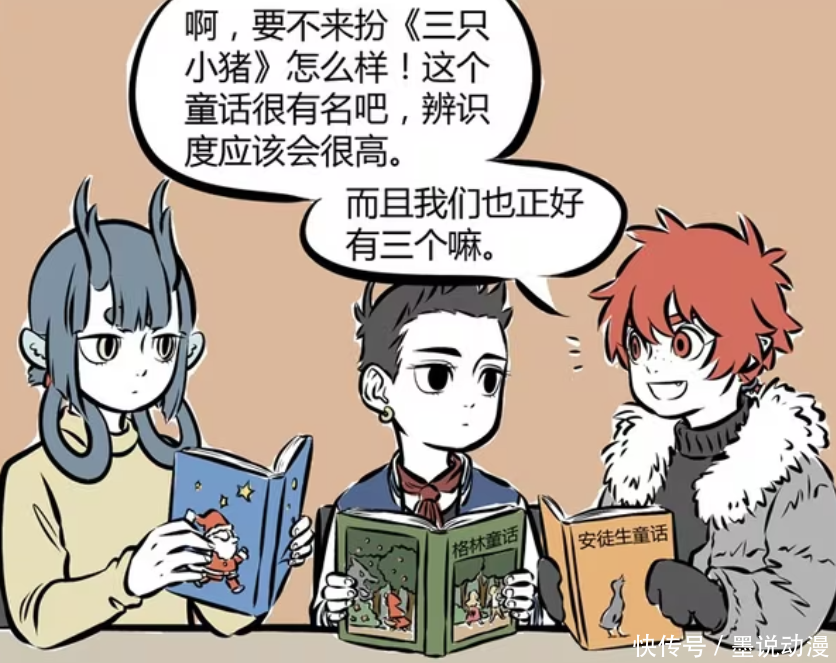 此时红孩儿有个漠视,要么通盘来演出《三只小猪》,这个童话的知名度很高,辨识度也很高。刚好哪吒、龙女和红孩儿是三个东说念主,可以cos三只小猪,这样也无谓推敲其他问题,只消准备好服装和说念具就可以。