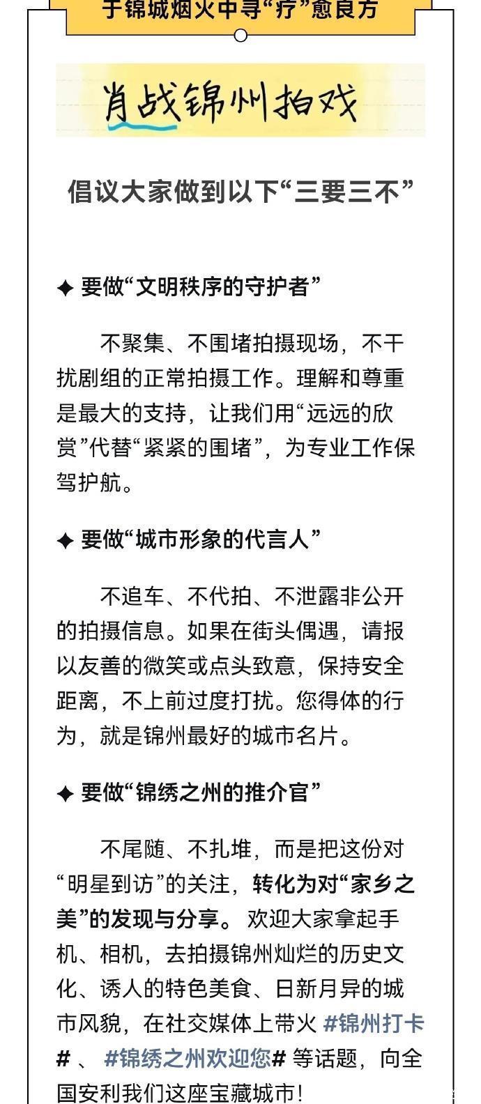 适合这泼天的流量锦州为肖战拍戏向市民发出倡议提议三要三不要给剧组给肖战给外界邃密的印象不形成困扰。锦州文旅亦然坐窝收拢这泼天的繁盛汗漫宣传锦州的东谈主文征象与好意思食。不得不说引得地点这般深爱王人因肖战以自己高出影响力能为一方带来高关注高热度从而带来东谈主气东谈主潮拉动知名度的同期拉动当地经济这依然是各地点的共鸣肖战的巨星效应巨星影响力是国度国民高度认同的。