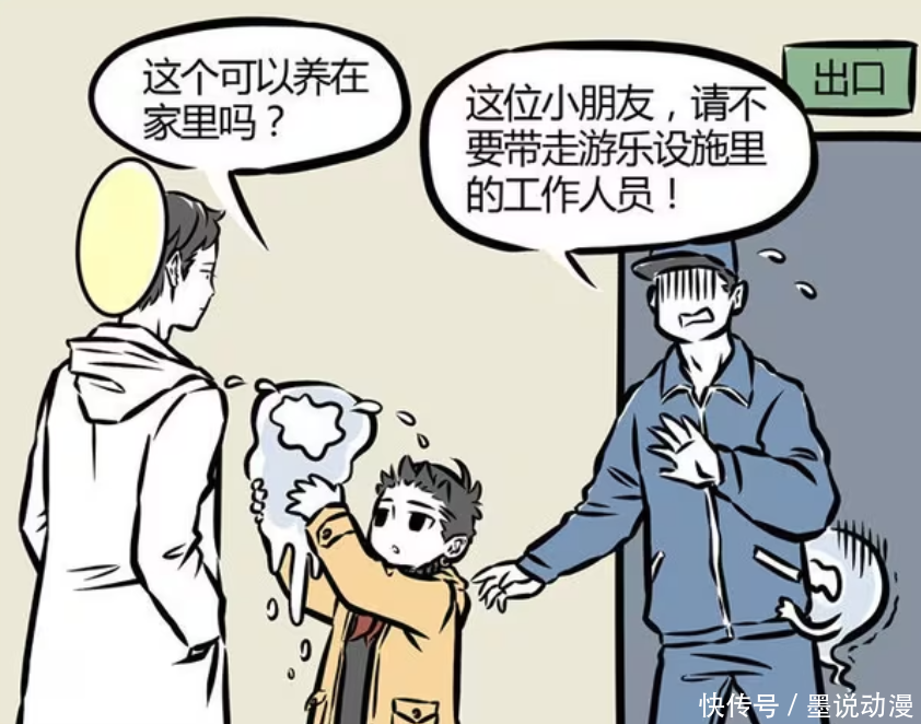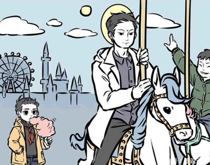 《非东说念主哉》漫画版中,哪吒来到红尘之后,不雅音偶尔也会带他去游乐土。哪吒可爱去鬼屋玩,鬼屋的责任主说念主员误以为哪吒是小孩就好拼凑。没念念到哪吒收拢了鬼屋责任主说念主员,还念念带且归养。不雅音也可爱游乐土,更可爱坐旋转木马,大概独自玩一整天。