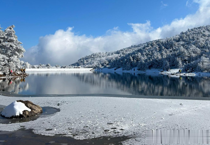 其实呢,百丈岭为浙西三尖之一(太子尖、百丈岭、童公尖),海拔1334米,位于临安龙岗镇,冬季以云海和雾凇景不雅为主。雪后的百丈岭山顶的镜湖(云顶冰湖)被群山环抱,宛如嵌入在雪地中的蓝对峙,号称杭州版的"赛里木湖"。举目望去,大片大片松树皆挂冰,眼睛和体魄皆在天国,因此蛊惑了许多东谈主来一览惊艳雪景。