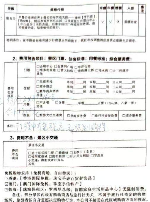 3月8日,两名记者抵达深圳,旅行社派专车接至货仓,在货仓大堂与旅行团“合同专员”签署了《港澳旅游合同》,并支付了尾款1720元(含剩余团费,此外还有荒芜条目2东说念主支付的400元导游小费和160元保障费)。