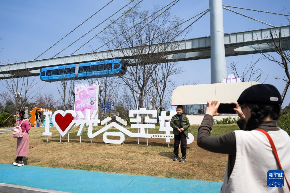 3月23日,旅客乘坐空轨列车游览。