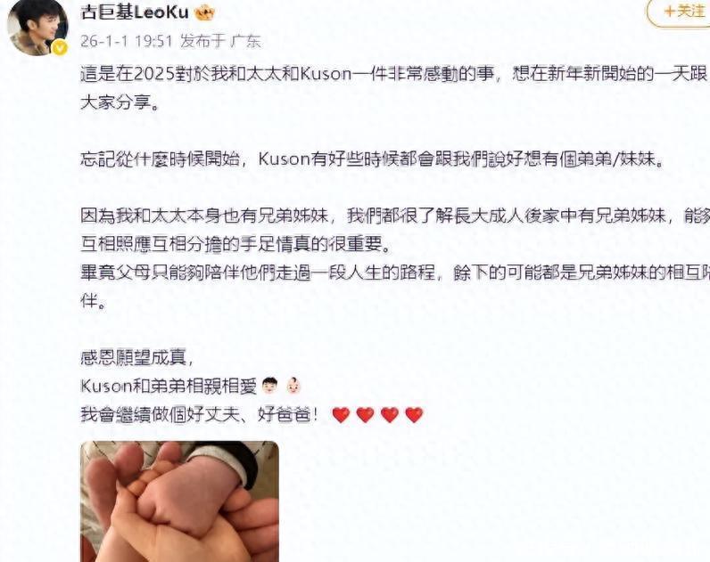 2026年第一天篮球投注app,全球王人在爽气的过元旦节,香港文娱圈亦然很骚扰,古巨基在网上官宣音书,说他妻子陈韵晴生了二胎,是个男儿。