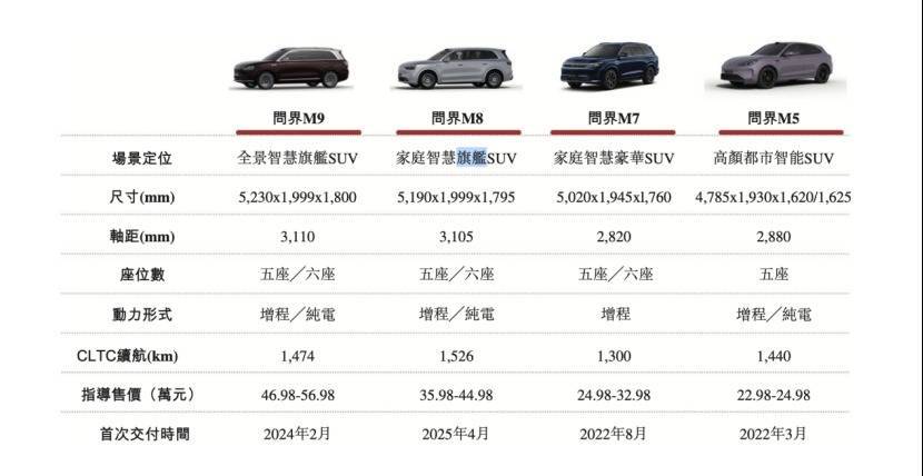 随后问界M5、M7、M9、M8四款车型接踵上市,价钱区间为25万至60万元,掩盖不同细分阛阓,构建起高端产物体系。