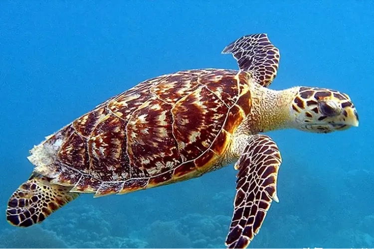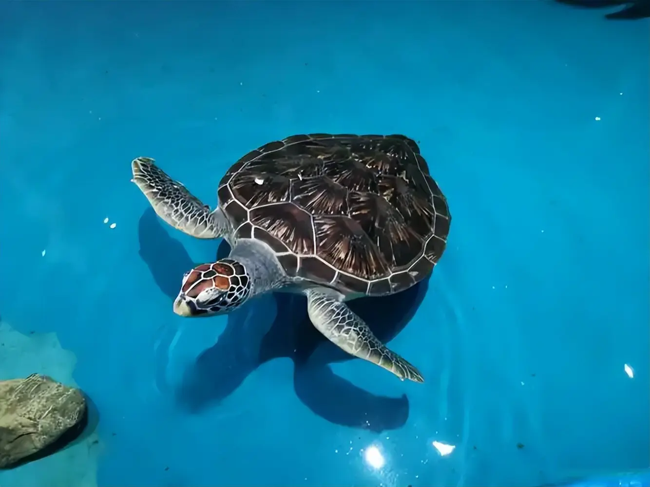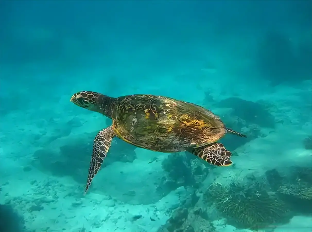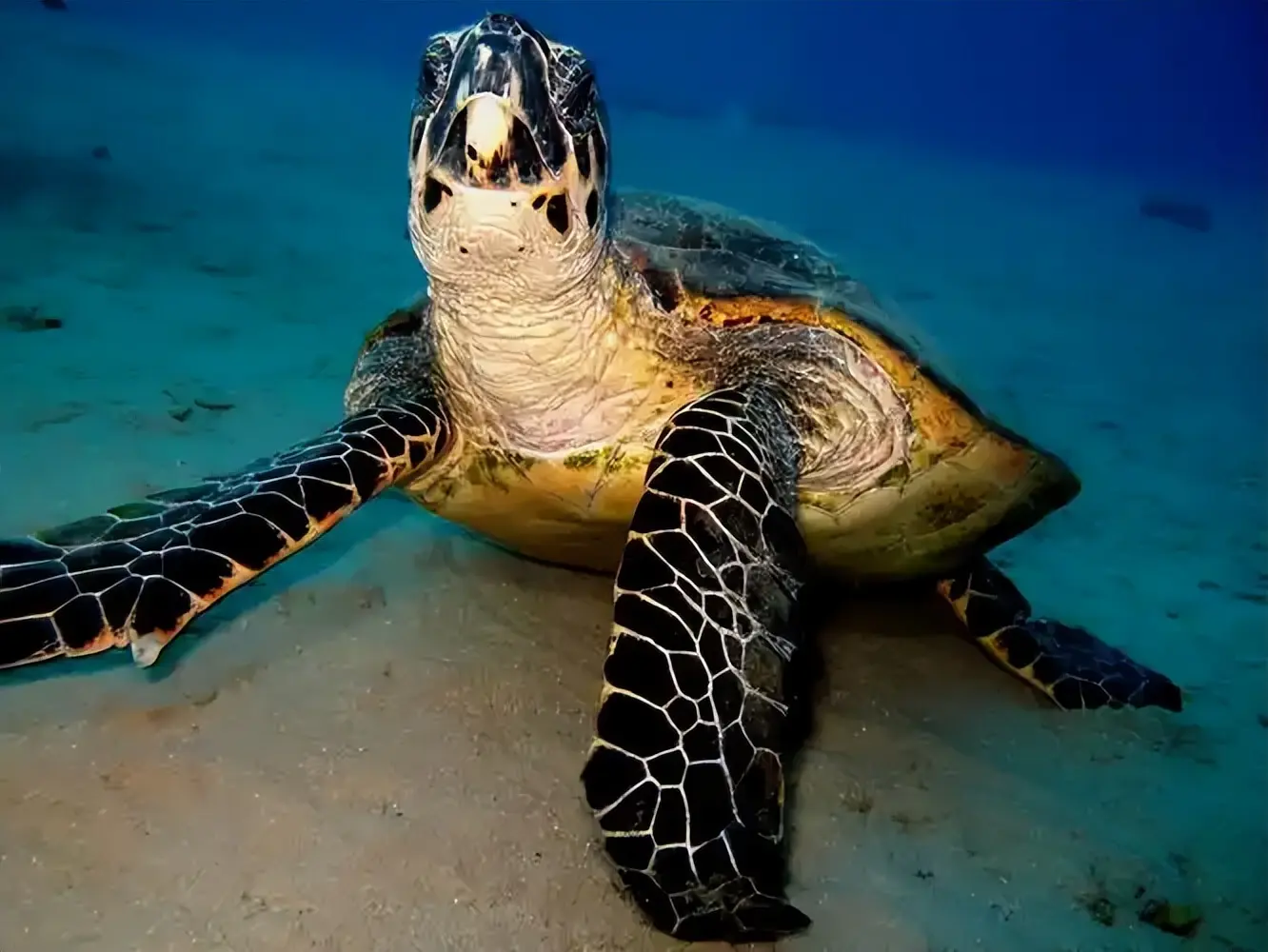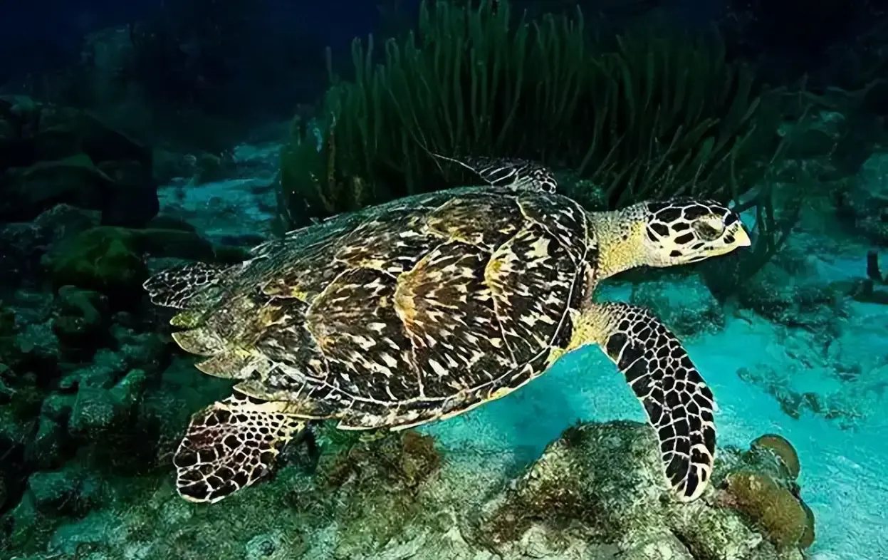 这种乌龟叫作念玳瑁,属于海龟科玳瑁属,是一种陈腐而非凡的海洋爬步履物。