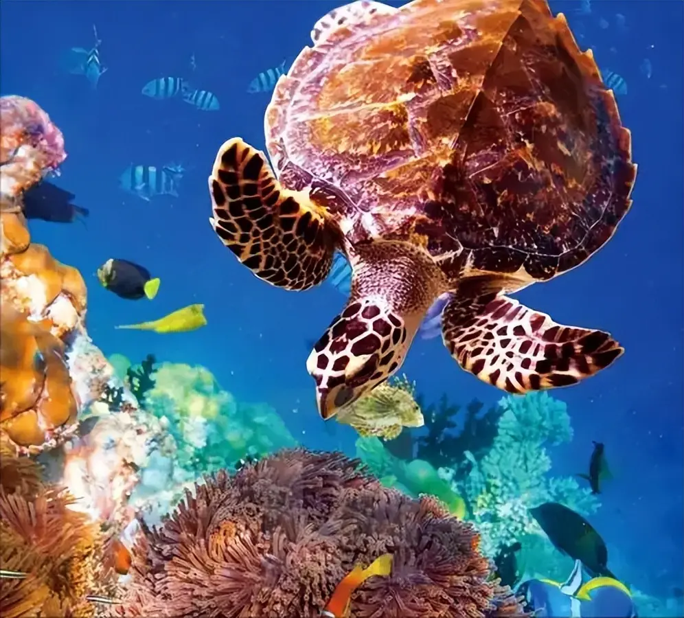 每一只玳瑁的花纹皆是唯独无二的,这些花纹不仅好意思不雅,更具有伪装作用,当玳瑁在珊瑚礁区域行动时,背甲的颜料能够与周围环境蛟龙得水,有用侧目天敌的攻击。